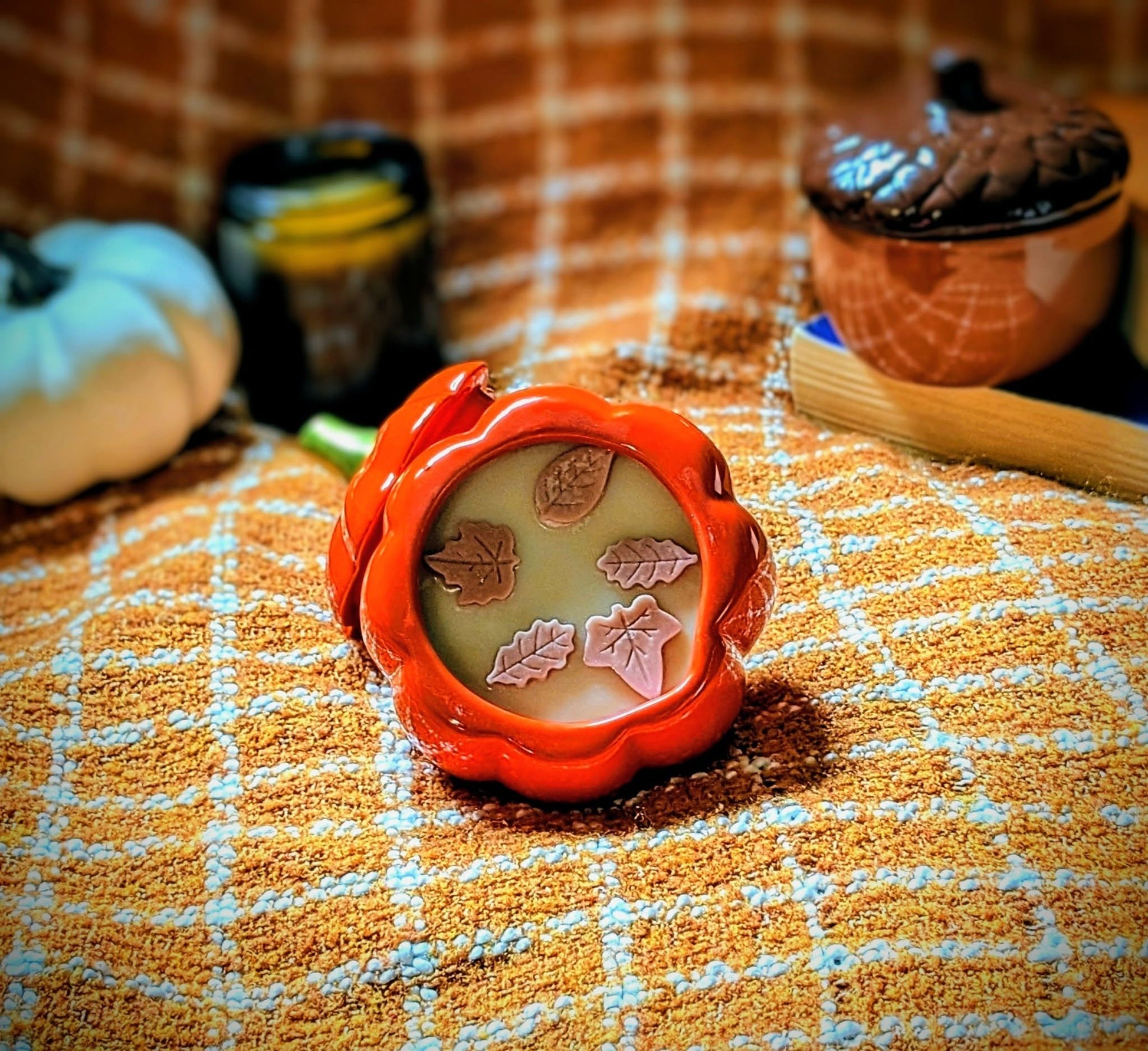 A cozy 9oz collectible crafted for the candle lovers who want the glow without the flame. Each Pumpkin & Acorn Wickless Candle is hand-poured with premium soy wax, infused with rich fall fragrance, and dusted with shimmering mica for a soft, golden glow when warmed.